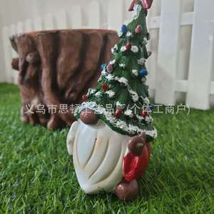 圣诞节跨境圣诞树发光矮人装饰摆件树脂家居设计圣诞树侏儒灯