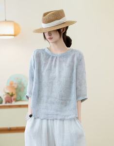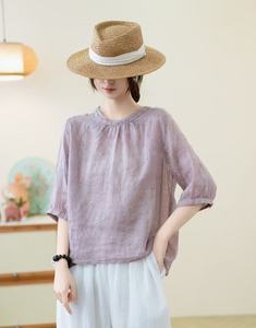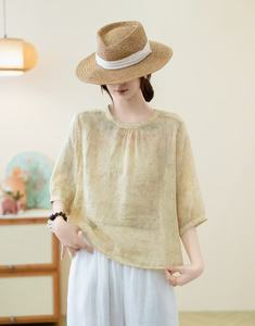 25年夏シャツ半袖純ラミールーズカジュアル韓国風トップスホットスタンピングバーニングフラワー七分袖プリントシャツ