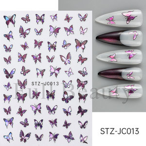 クロスボーダー新しいネイルアートステッカーインファンタジーパープルキャットアイレーザーパープルバタフライバックグルーネイルステッカー卸売