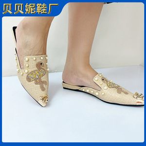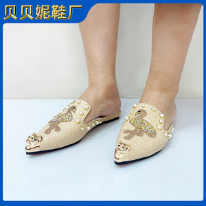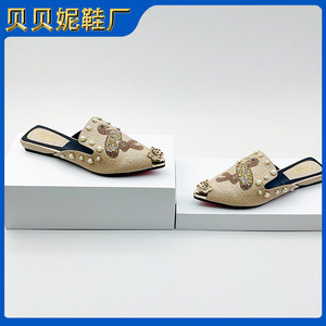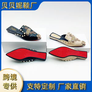 クロスボーダーファッションレディースシューズ包頭ハーフスリッパレディース夏アウター新しいポインテッドトゥファッションミュールシューズヨーロッパとアメリカのローヒールスリッパ