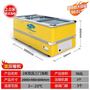 冷凍庫 業務用大容量冷蔵ショーケース 冷凍庫 冷蔵庫 鮮度保持冷凍両用透明ガラス横型アイランドキャビネット
