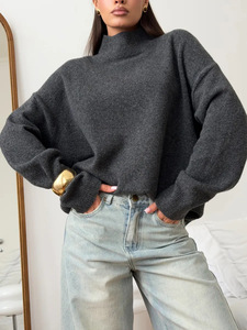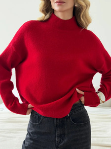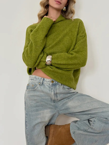 Свитер трикотажный Amazon ソリッドカラー プルオーバー ラウンドネック セーター 女性用