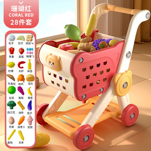 抖音同款仿真超市购物车宝宝益智手推车过家家果蔬切切乐套装玩具
