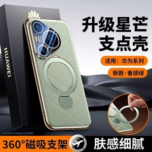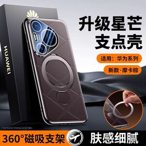 适用华为pura70pro+手机壳磁吸真皮pura70旋转支架Ultra镜头防摔