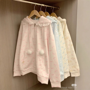 2025 秋と冬の新スタイル新鮮で甘いルーズベビードールカラースウェットシャツ韓国スタイルのフード付きジャケット女性の卸売供給