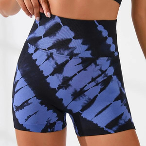 国境を越えた人気の新しいハイウエストシームレスタイダイヨガショーツピーチヒップリフティングタイトアウトドアスポーツ通気性女性用