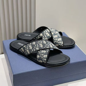 欧洲站新款男士拖鞋经典字母休闲交叉一字拖潮牌百搭舒适沙滩凉鞋