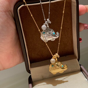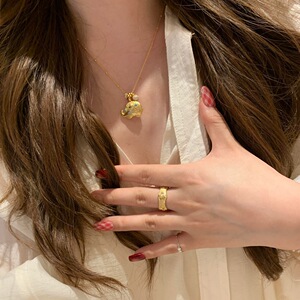 「Lucky Elephant Ruyi」新しい中国風の古代ゴールデン象ペンダントネックレス女性のレトロな鎖骨チェーン女性の 2025 新しいスタイル