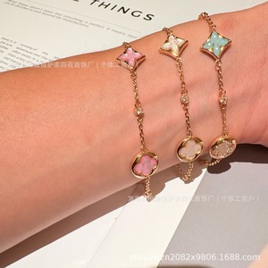 ネットセレブ同風ロバの四つ葉のクローバー四つ花五つ花ブレスレットレディース天然螺鈿メッキ18K四つ葉のクローバー老眼ネックレス
