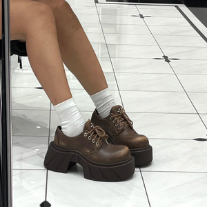 SK ファントム手磨きレザーハイヒールダービーシューズファッショナブルなレースアップ厚底靴女性の靴 25 夏の新スタイル
