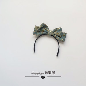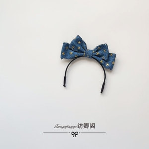 拉布布玩偶发箍-做旧蓝色牛仔蝴蝶结
