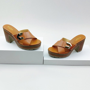 新款跨境时尚鞋款高跟拖鞋波西米亚外贸大码女鞋女式凉拖外穿百搭