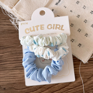 スイートブルーの万能生地ガールズヘアゴム3個、ベーシックガーリーハートフレッシュヘアゴムヘアアクセサリー