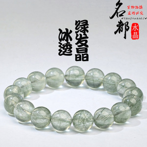 Mingdu クリスタル天然氷透明グリーンヘアクリスタルブレスレットラウンドビーズグリーンヘアクリスタルブレスレットグリーンキャットアイグリーンヘア卸売