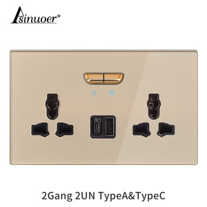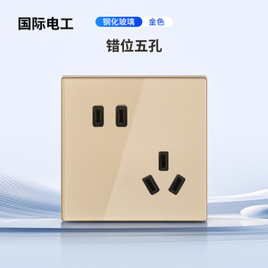インターナショナルエレクトロニクス ガラストグル ゴールド インジケーター付き LED 大型パネル プラグイン 1 オン 5 5 穴スイッチ 電源オフプラグ