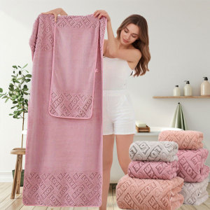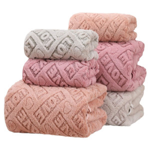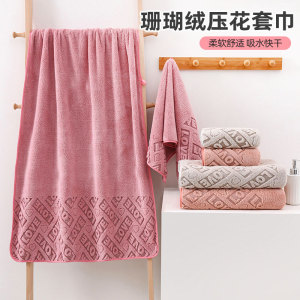 クロスボーダーLOVE ジャカードコーラルベルベットタオル&バスタオルセット、純綿より吸水性が高く、髪を素早く乾かす、超ソフトなビーチタオルギフトボックス