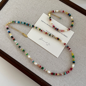 淡水パールレトロドーパミンカラー天然石ネックレス女性のライト高級レトロ天然石カラークリスタルネックレス