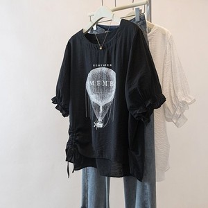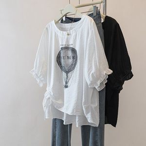大码冰丝烫钻抽绳花苞袖t恤女2025夏季新款宽松显瘦时尚短袖上衣