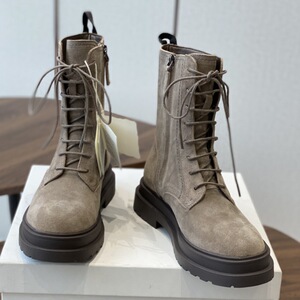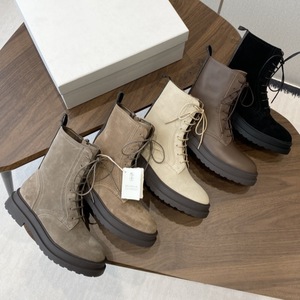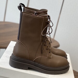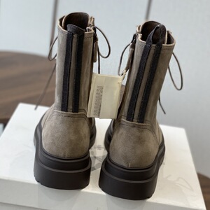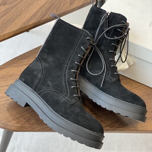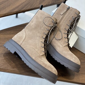 欧美BC女士复古串联珠链麂皮厚底马丁靴圆头百搭系带增高短靴子