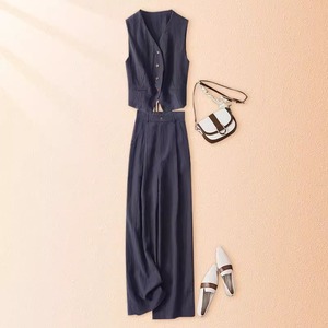 薄いリネンテンセルベストワイドレッグパンツツーピースセット女性のための 2025 夏の新しいスーツパンツトップスーツ