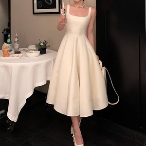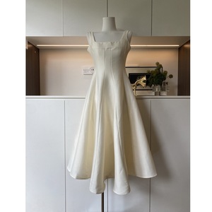 女款夏 | 赫本裙 dio*秀款精仿丝毛光泽感收腰吊带连衣裙礼服方领
