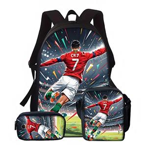 新しいクロスボーダーサッカー選手ロナウドプリントバックパックスリーピース食事バッグ鉛筆バッグ学生大容量スクールバッグ
