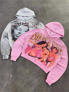 ヨーロッパとアメリカのレトロなハイストリートクロスボーダーフード付きスウェットシャツカーディガン、男性と女性用、新しいトレンディなフード付きカーディガンスウェットシャツ冬