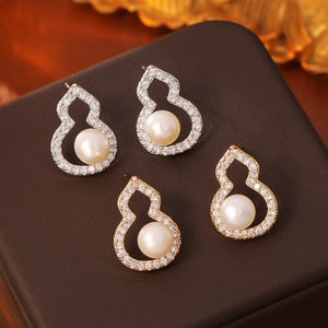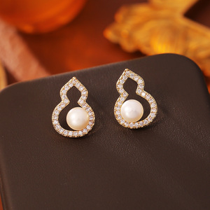 中国风福禄葫芦珍珠耳钉高级感时尚精致日常百搭耳饰女新中式耳环