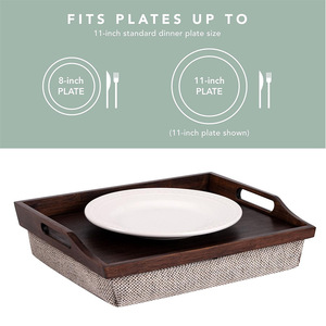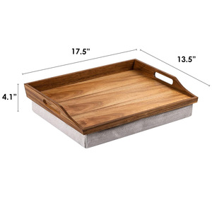 取り外し可能なクッション付き木製ラップトップトレイ、家庭用アフタヌーンティーオフィスノートブック収納トレイベッドトレイ