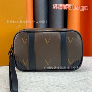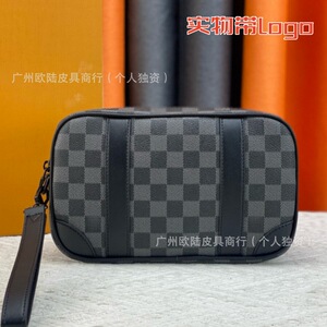 国境を越えた供給新しいクラシック老眼市松模様メンズクラッチバッグファッショナブルで多用途なロゴ付き本革ビジネスバッグ