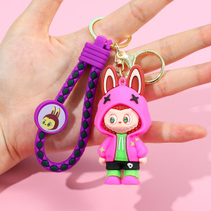 Labubu ラブブキーホルダー漫画出っ歯少年人形スクールバッグペンダント車のキーチェーン小さなギフト卸売
