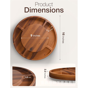 木製ラウンドコンパートメントトレイ西洋スタイルの食事収納トレイチーズボード麺寿司フルーツ回転トレイ