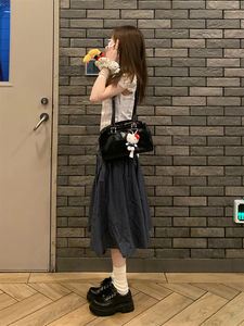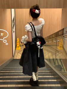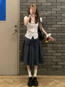 韓国風甘辛通勤スタイルスリムパフスリーブシャツ+ハイウエストリボンルーズスカートツーピーススーツ女性用
