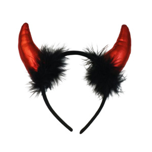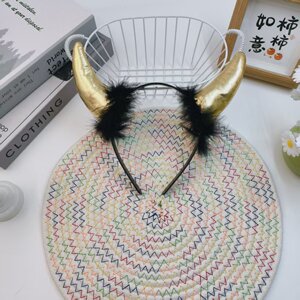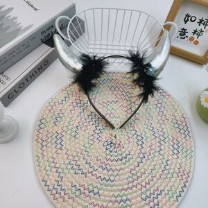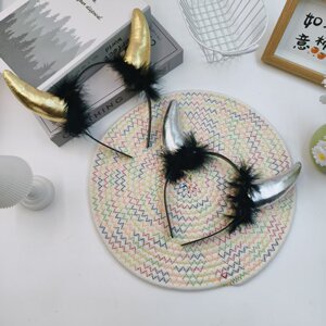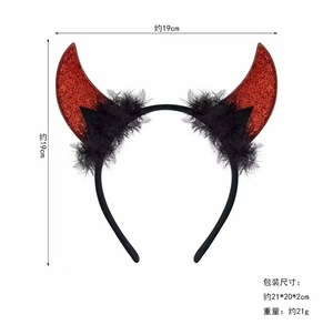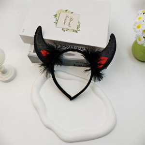 新款跨境万圣节小恶魔角头箍搞怪羽毛发饰头扣鬼节派对装饰蝙蝠头