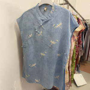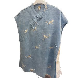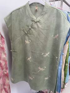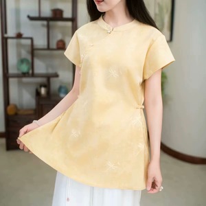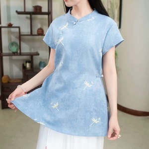 中国風の美しい静山トンコウ夏の新しい中国風の改良されたシャツ刺繍シックなラグランスリーブチャイナトップシャツ