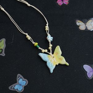 景徳鎮中国風セラミック蝶中国風高価値ニッチネックレス鎖骨チェーン夏の旅行マッチング供給