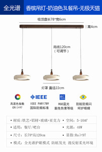 3头奶油色餐吊全光谱护眼全网通