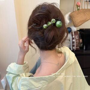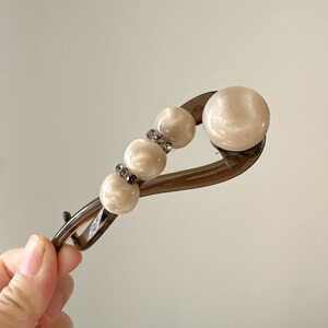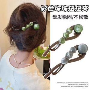 フレンチグラデーションビーズツイストクリップヘアピン女性用2025新しいハイエンド後頭部ヘアピンヘッドバンド