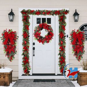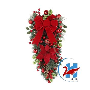 クロスボーダークリスマスリース、ベルベットの赤い花、クリスマス風デコレーションセット、ホリデーリース、逆さ飾り、ホームデコレーション