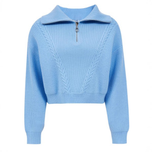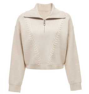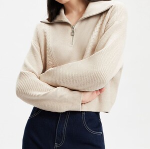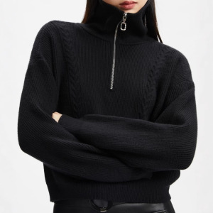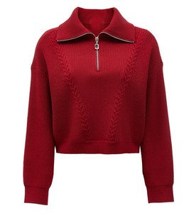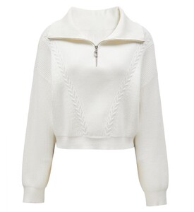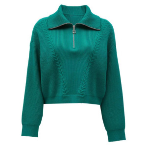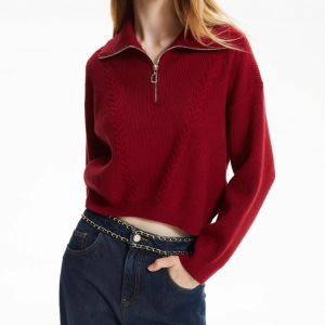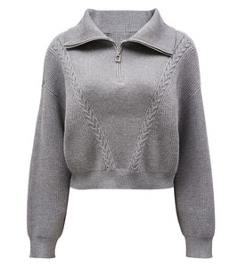 ヨーロッパとアメリカのショートニットレディースシャツ2025秋冬新作無地ツイスト長袖スタンドカラージッパーセータージャケット