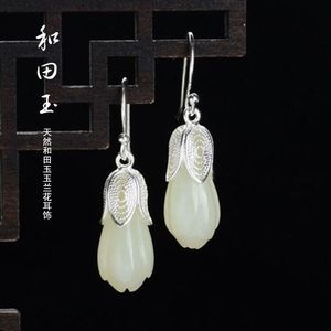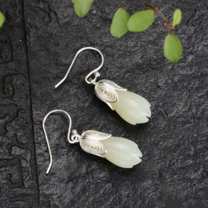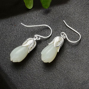 Yuanyuan 和天翡翠モクレンの花のイヤリング s925 スターリングシルバー女性のイヤリングレトロイヤーフック抗アレルギーイヤリング