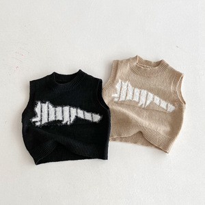 子供服秋の新作子供用ニットベスト男の子と女の子用ジャカードカラーマッチング多用途レイヤード春と秋のセーターベスト