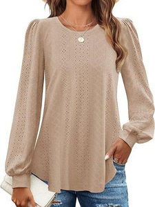 クロスボーダーヨーロッパとアメリカの服 2024 秋の新作アマゾンラウンドネックルーズカジュアルランタンスリーブ長袖 Tシャツ