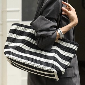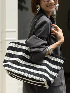 女性のための海辺の休暇バッグ 2025 夏の新しいスタイルの織ビーチバッグ大容量ストライプ中空多用途トートバッグ