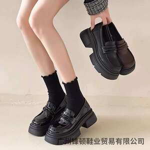 牛革バージョン~英国風厚底スモールレザーシューズレディースレトロブラックカジュアルプラットフォームシューズスリッポンローファー