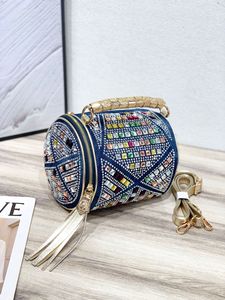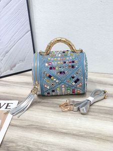 韓国版のミニファッションカラーダイヤモンドハンドバッグ、ホットダイヤモンド、多用途、絶妙でハイエンドのデニムバッグ、女性用クロスボディバッグ