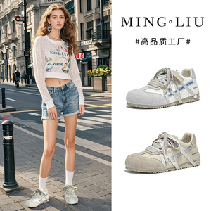 レトロ本革道徳訓練靴女性のための 2025 秋の新靴女性の 2 色の靴ひねくれたスニーカーカジュアル女性の靴