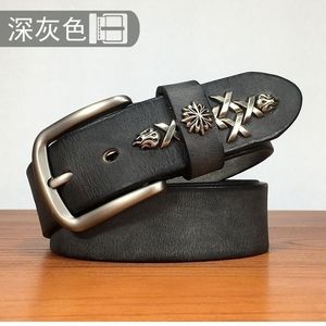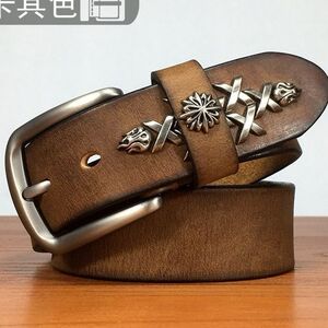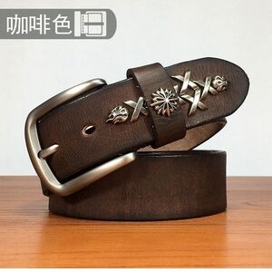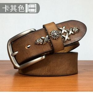 皮带男手工铆钉层牛皮腰带男士休闲中青年复古裤带卡其色