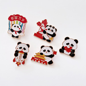 建国記念日パンダブローチかわいい中国風の漫画金属バッジ男性と女性のバッグアクセサリー建国記念日ギフト