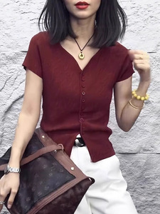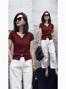 2025新款女秋冬小众针织衫设计感打底衫女早秋季修身内搭短袖上衣